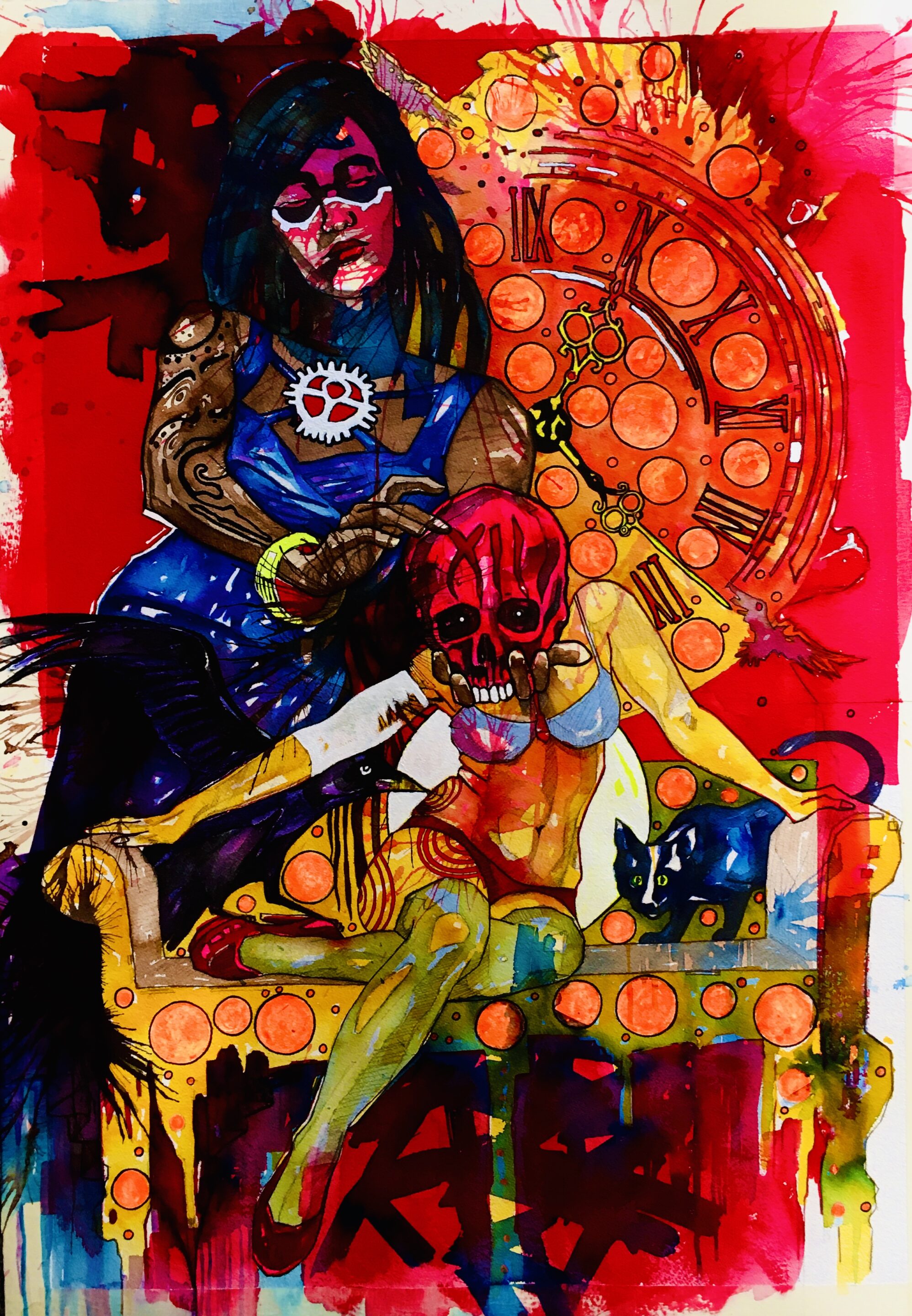 Teknik: Akrylmaling og blæk på kraftig papir 640g