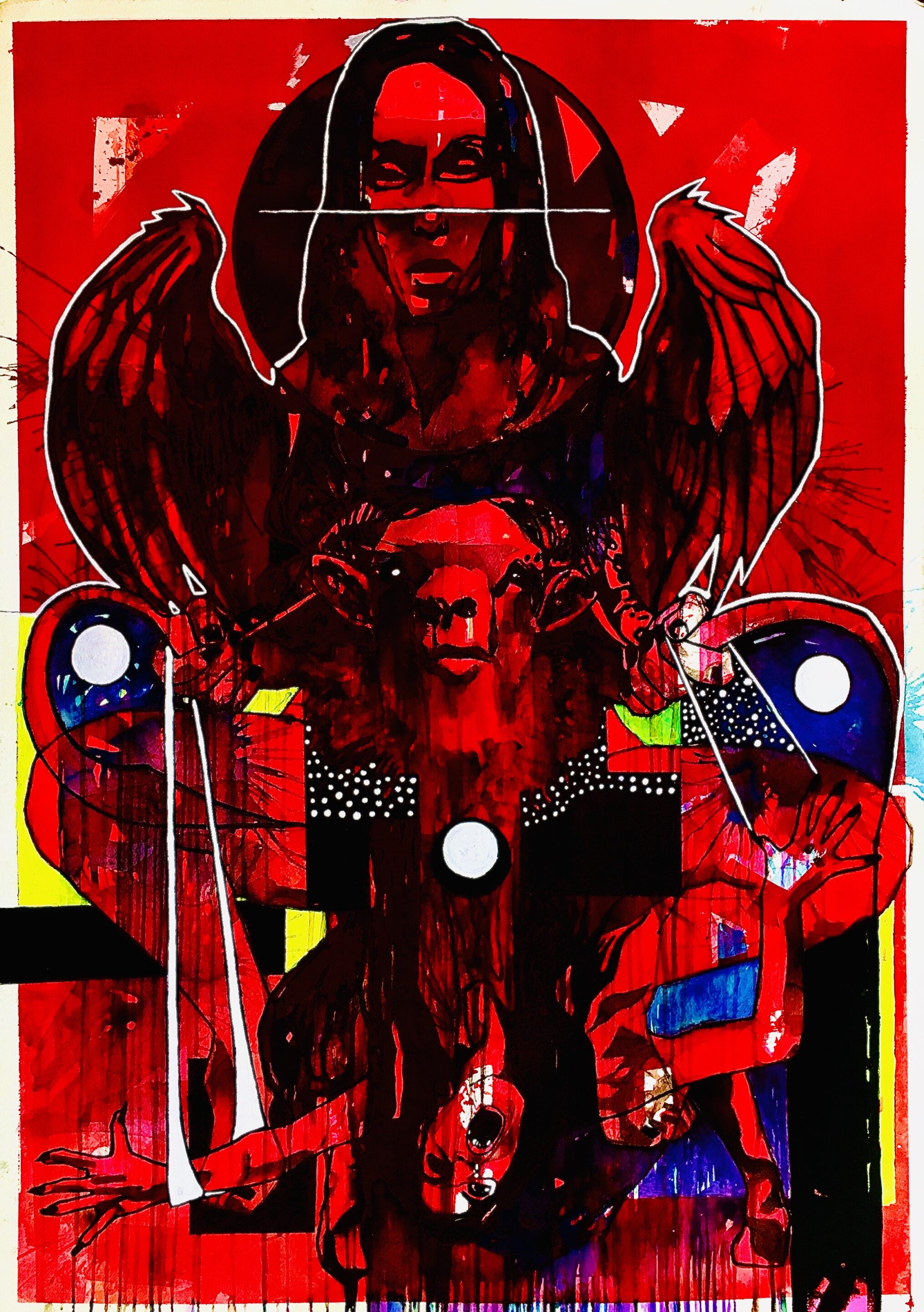 Teknik: Akrylmaling og blæk på kraftig papir 640g