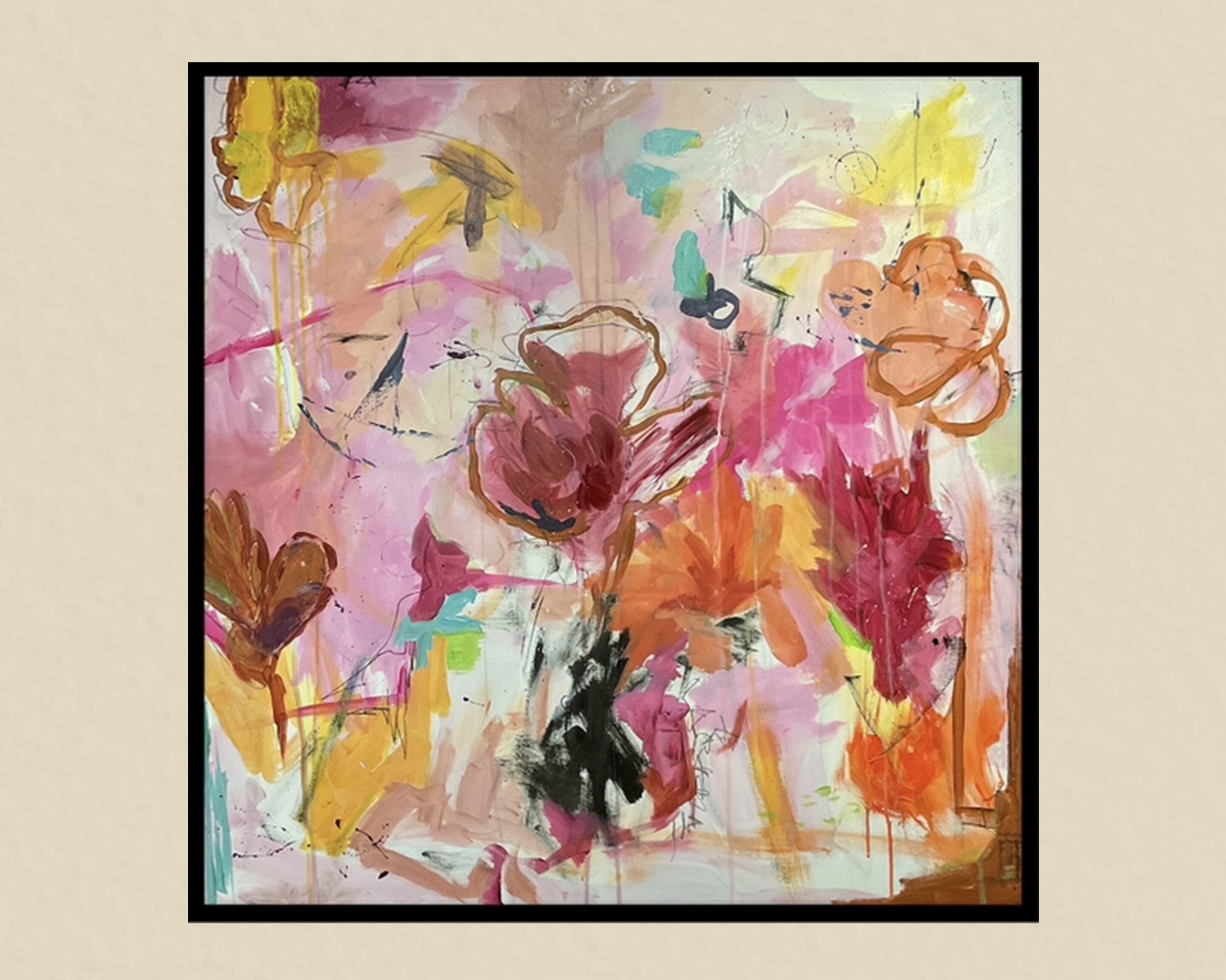 Dejlig dag at male i, regnen drypper stille ned og jeg inspireres af skønne farver i haven. Fantasien har fået frit løb i et dejligt samspil af lækre varme farver og detaljer. Værket sælges uden ramme, malet på kanten og ser perfekt ud uden ramme. Maleriet har ophæng bagpå, signeret og sendes fragtfrit i DK