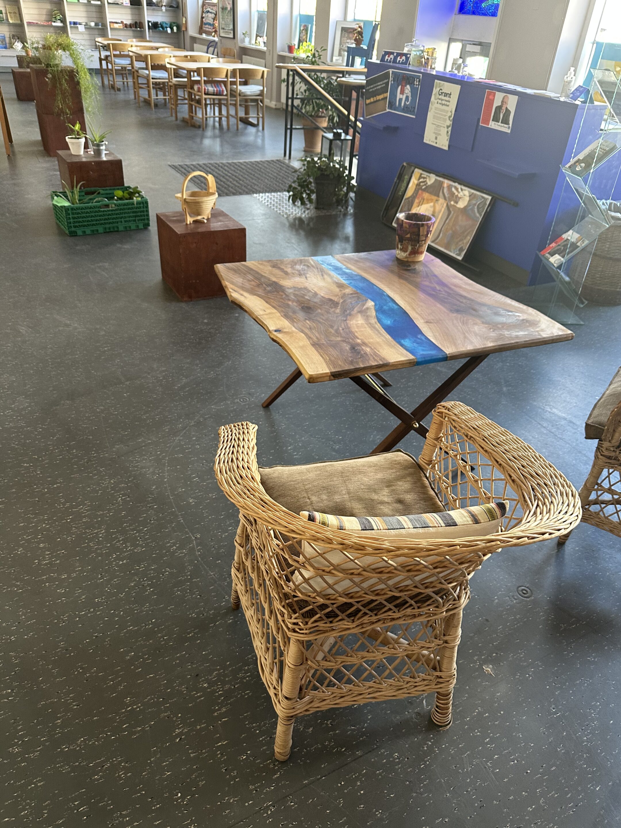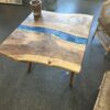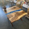 Bordplade: Valnøddetræ med blå epoxyflod og naturinspireret struktur