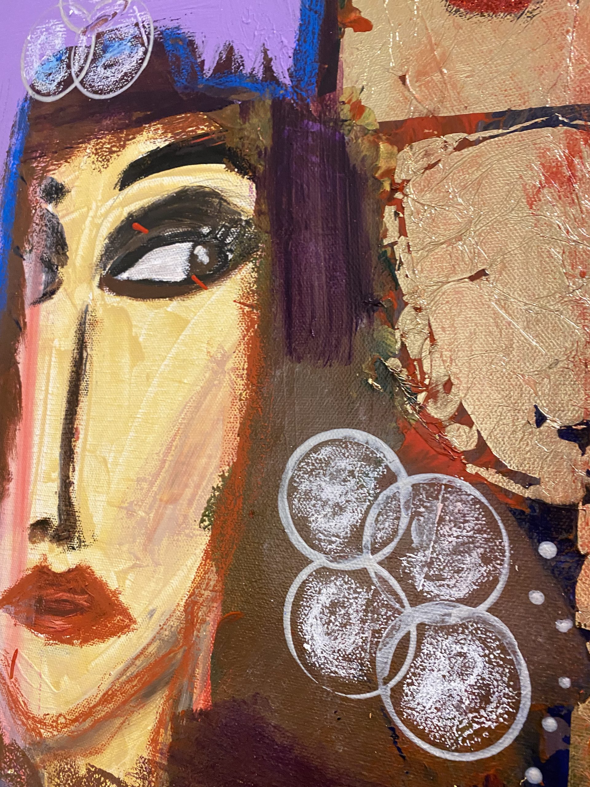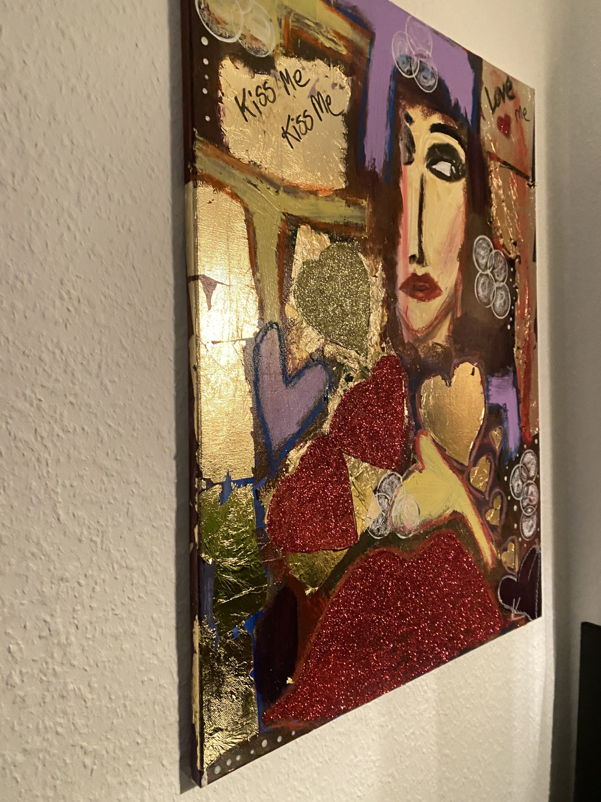Værket er skabt lag for lag, med struktur, glimmer og rå penselstrøg, og rummer både smerte og håb. Det er et maleri for den, der har elsket dybt, mistet noget – og stadig tror på kærligheden.