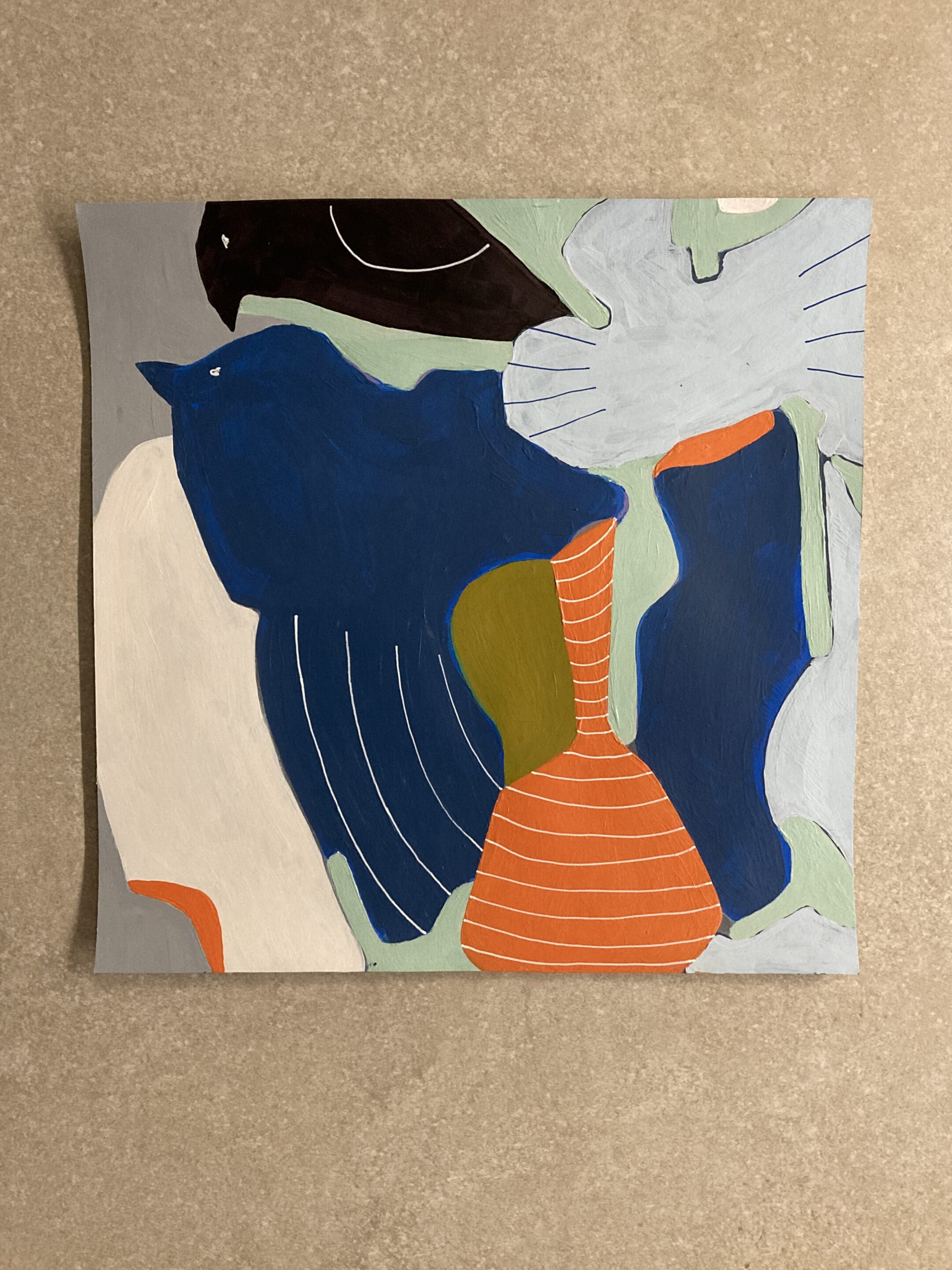 30x30cm Originalt maleri med acryl på kraftigt kunstpapir. Inklusiv indramning i massiv eg 40x40cm med passepartout og glas som front.