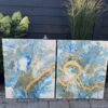 “Heartbeat “ 🩵er et moderne og stemningsfuldt maleri i to dele, hvor blå og hvide nuancer flyder sammen som vand og himmel, gennemskåret af en gylden puls – et symbol på liv, kærlighed og forbindelse.